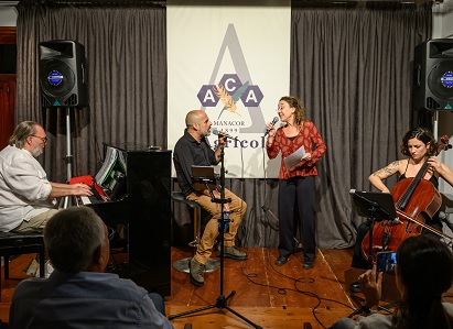 CONCERT A S’AGRÍCOLA A CÀRREC DEL COMPOSITOR I CANTANT MANACORÍ DAMIÀ FLUXÀ. Diumenge dia 12 de febrer, a les 19 h, inaugurant la darrera part de les activitats musicals previstes per a després de la pausa estival del 2025, va celebrar-se a s’Agrícola un interessantíssim concert a càrrec del compositor i cantant Damià Fluxà. En aquesta ocasió, el cantautor manacorí va estar acompanyat per tres músics de luxe: el pianista Toni Terrades, la violoncel·lista Carmela Font i la soprano Maria Antònia Gomila.
