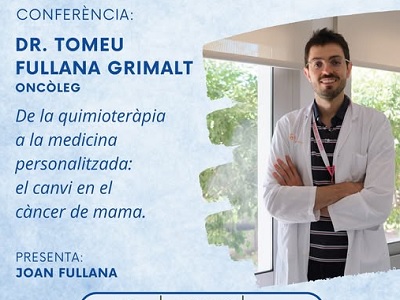 Associació Cultural s'Agrícola. Manacor. Dissabte dia 25 d’octubre a les 20:00, i al saló d’actes de l’Associació Cultural s’Agrícola Manacor, s’inaugurarà el cicle ”Joves manacorins al món”, amb la conferència del doctor Tomeu Fullana, que ens parlarà “De la quimioteràpia a la medicina personalitzada: el canvi en el càncer de mama”.
